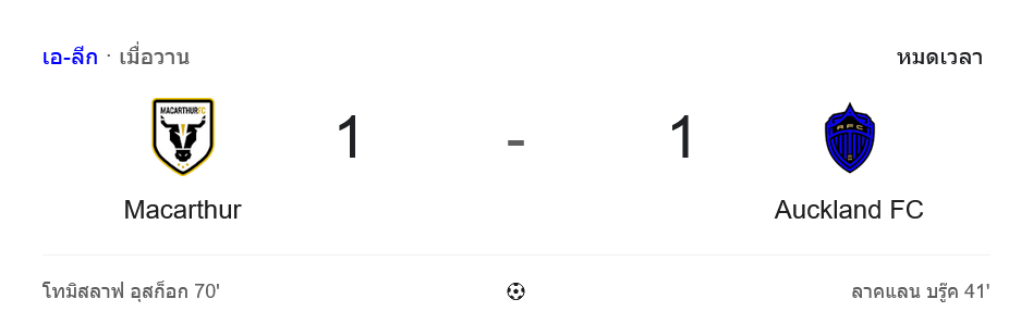 เกมนี้ในศึกเอ-ลีก เมน ที่สนามของแมคอาร์เธอร์ เอฟซี เป็นการชนกันของทีมจ่าฝูงโอ๊คแลนด์ เอฟซี กับเจ้าถิ่นอันดับ 3 ที่กำลังยื้อแต้มไล่บนหัวตาราง แฟนบอลที่นั่งจ้องอัปเดต ผลบอลสด กันแบบตาไม่กะพริบต้องบอกเลยว่าคุ้มค่าทุกนาที เพราะรูปเกมทั้งดุดัน ทั้งแท็กติกจัดเต็ม บ้านกีฬาเห็นแล้วบอกเลยว่า “นี่แหละบอลระดับลุ้นแชมป์ของจริง”