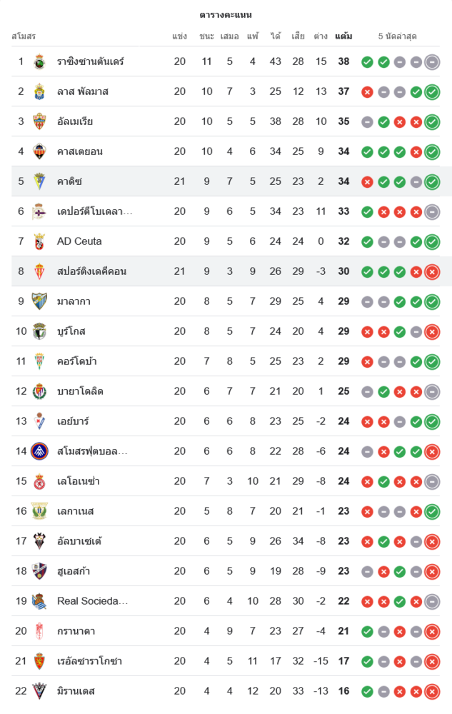 📌 สถานการณ์บนตารางคะแนน เซกุนด้า ดิวิชั่น