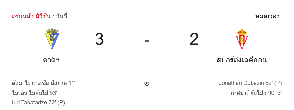 จาก : ผลบอลสด เซกุนด้า ดิวิชั่น ระหว่าง กาดิซ 3-2 สปอร์ติ้ง กิฆอน วันนี้ 10/1/69 – บ้านกีฬา