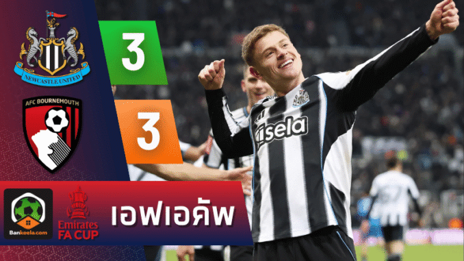 ศึกเอฟเอ คัพ รอบ 3 ที่เซนต์เจมส์ พาร์ก กลายเป็นค่ำคืนดราม่าเต็มรูปแบบ เมื่อ นิวคาสเซิล ยูไนเต็ด เปิดบ้านเสมอ บอร์นมัธ 3-3 ก่อนดวลจุดโทษชนะ 7-6 ผ่านเข้ารอบแบบหืดจับ แฟนบอลที่ตามเช็ก ผลบอลสด กันแทบไม่ทันกับจังหวะพลิกไปพลิกมา โดยเจ้าถิ่นได้สองประตูจาก ฮาร์วีย์ บาร์นส์ และอีกหนึ่งลูกจากจุดโทษของ แอนโธนี กอร์ดอน ขณะที่ทีมเยือนยิงสวนจาก อเล็กซ์ สก็อตต์, เดวิด บรูคส์ และ มาร์คัส ทาเวอร์เนียร์