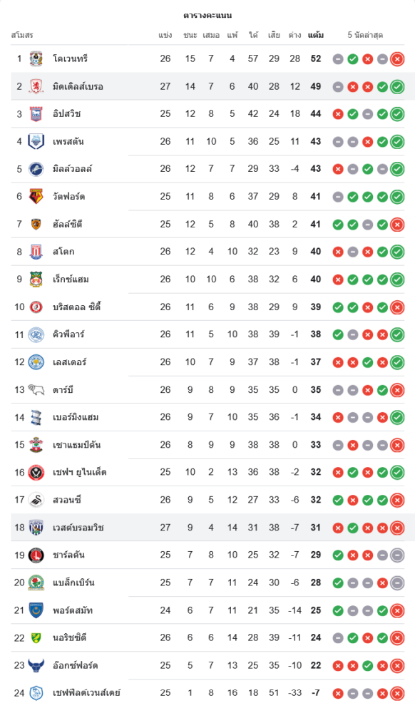 📈 สถานการณ์บนตารางคะแนนแชมเปี้ยนชิพ อังกฤษ