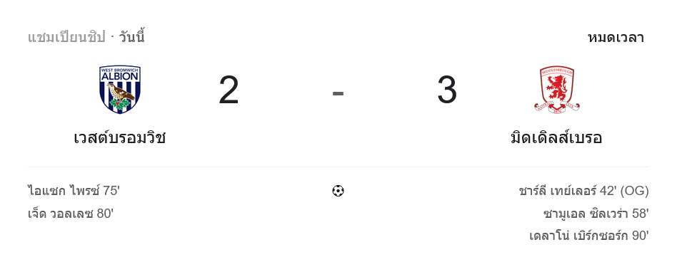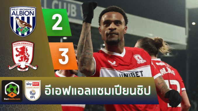 จาก : ผลบอลสด แชมเปี้ยนชิพ ระหว่าง เวสต์บรอมวิช อัลเบี้ยน 2-3 มิดเดิลสโบรห์ วันนี้ 17/1/69 – บ้านกีฬา