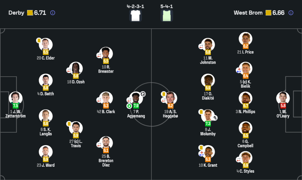 จุดเปลี่ยนคือการส่ง เมแฟม ลงมา เติมความแข็งแกร่งลูกกลางอากาศ ทั้งเกมรับและลูกเซตพีซรุก ดาร์บี้เริ่มถอยลึกเกินไปในช่วงท้าย พยายามปิดพื้นที่หน้าประตูแต่ปล่อยให้เวสต์บรอมบอมบ์ลูกกลางอากาศซ้ำ ๆ สุดท้ายก็พลาดเพียงครั้งเดียวในนาทีชี้ชะตา