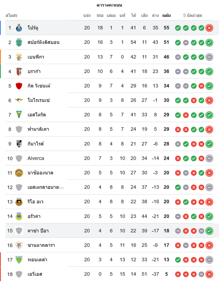 📅 ตารางคะแนนและโปรแกรมบอลซูเปอร์ลีกา โปรตุเกสนัดถัดไป