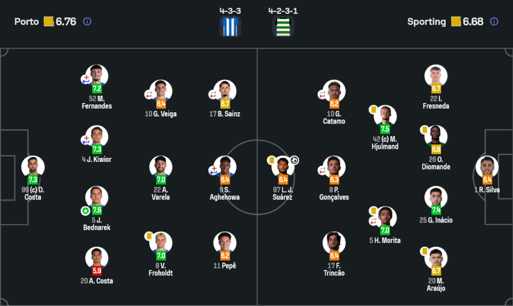- 🟨 90+3′ เดนิซ กูล (ปอร์โต้) และ มักซี อาราโฆ (สปอร์ติ้ง) โดนใบเหลืองคนละใบจากจังหวะปะทะและมีปากเสียงกัน