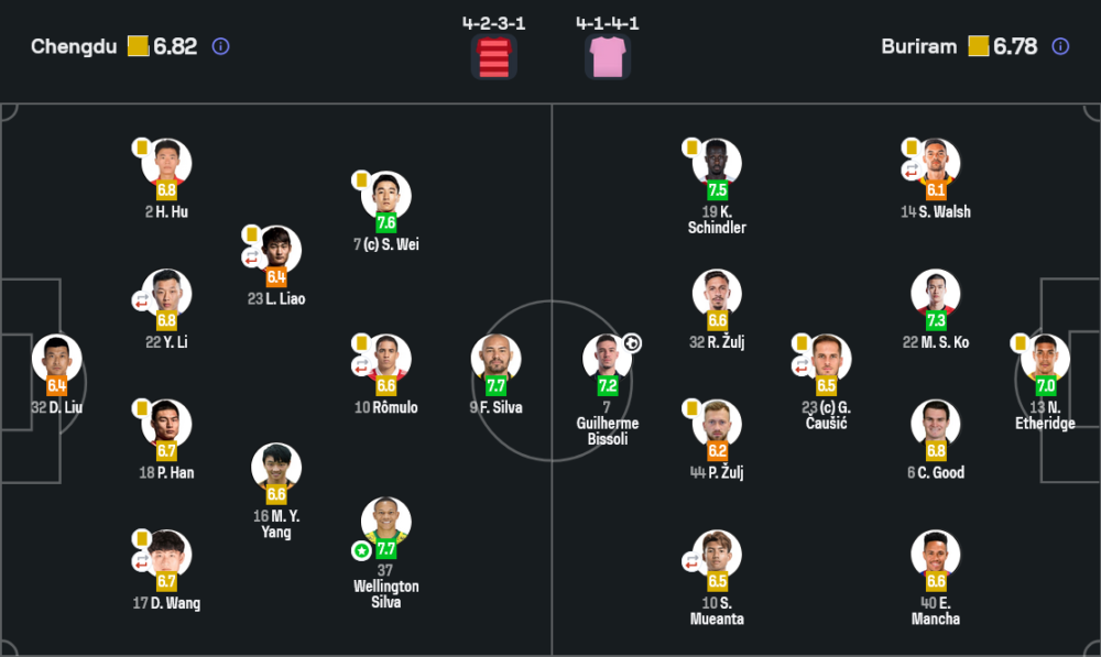 - 🔁 นาที 82 เฉิงตูปรับเกมรับ ส่ง เอกอร์ ซอโรคิน ลงแทน หลี ยี่ และ เอซิมัต เคย์เซอร์ ลงแทน หวัง ต้า