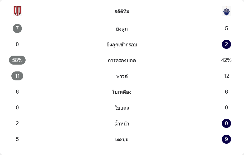 - 🟨 นาที 50 หู เหอ ทำฟาวล์หยุดเกมสวนกลับ โดนใบเหลือง แต่จังหวะต่อเนื่องกลายเป็นลูกเตะมุมให้บุรีรัมย์