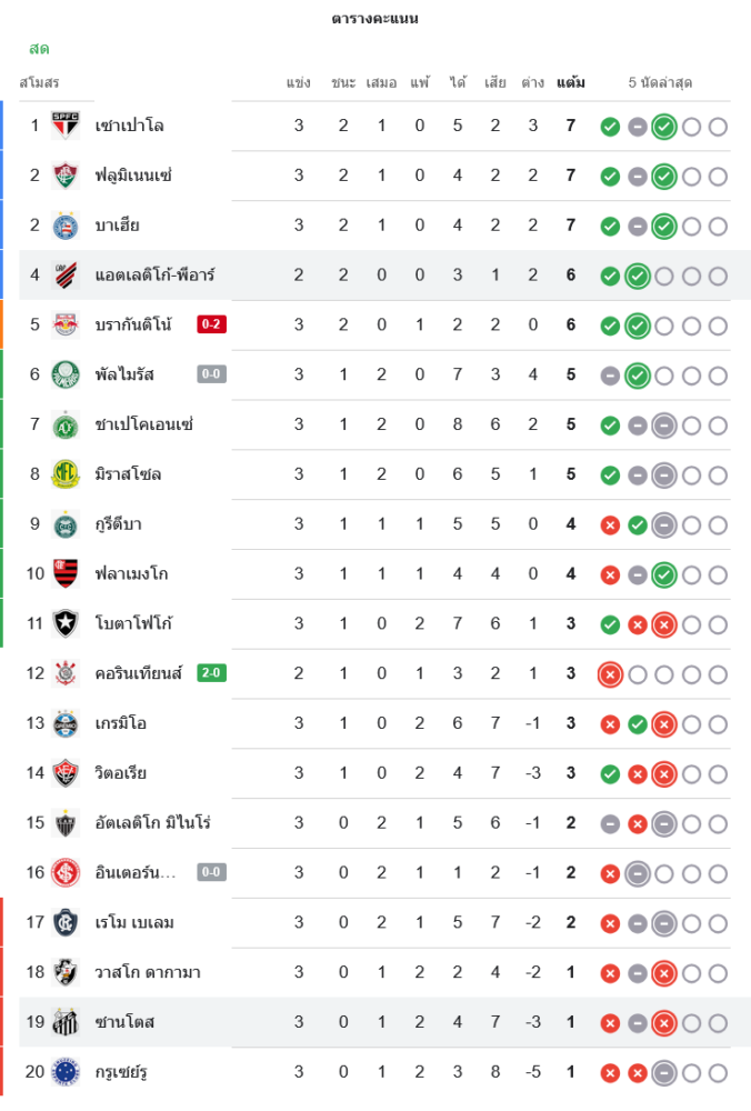 📌 สถานการณ์ในตารางคะแนนบราซิล เซเรีย เอ