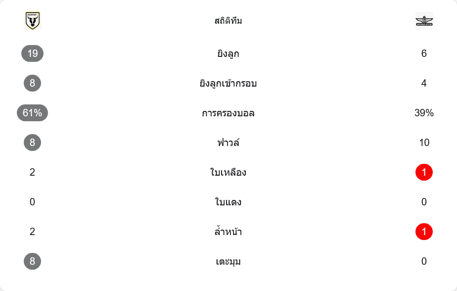 แม็คอาร์เธอร์เป็นฝ่ายบุกมากกว่าอย่างชัดเจน พวกเขายิงรวม 19 ครั้ง เข้ากรอบ 8 ครั้ง ครองบอลถึง 61 เปอร์เซ็นต์ และได้เตะมุม 8 ครั้ง สะท้อนว่ากดคู่แข่งอยู่แทบทั้งครึ่งหลัง ขณะที่แบงค็อกมีโอกาสยิง 6 ครั้ง เข้ากรอบ 4 ครั้ง ครองบอล 39 เปอร์เซ็นต์ ได้เตะมุม 0 ครั้ง แต่ความต่างคือความเฉียบขาดในพื้นที่สุดท้ายและการเซฟของผู้รักษาประตูที่ช่วยประคองเกมไว้ รวมถึงรูปเกมที่ยอมถอยเพื่อปิดงานตามสกอร์รวม