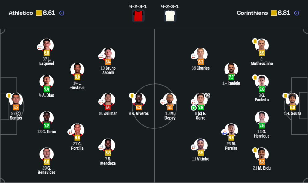ฝั่งโครินเธียนส์เล่นแบบเลือกจังหวะ เน้นวางบล็อกกลางสนามให้แน่น ใช้ Raniele เป็นตัวตัดเกมและสกรีนหน้าเซ็นเตอร์ ทำให้แอตเลติโกต้องยิงไกลบ่อยขึ้น เมื่อรับได้แล้วค่อยสวนกลับแบบตรงประเด็น การ์โรยืนเป็นเพลย์เมกเกอร์คอยเปลี่ยนสปีดจากรับเป็นรุกในพริบตา และประตูเดียวของเกมก็มาจากโมเมนต์นี้พอดี ครึ่งหลังการเปลี่ยนตัวสามรายรวดนาที 61 คือหมากปิดเกมเต็มตัว โครินเธียนส์ยอมถอยหนึ่งสเต็ป ลดความเสี่ยงในแดนกลาง ปิดพื้นที่ครึ่งช่อง และบีบให้เจ้าถิ่นต้องเปิดบอลหรือยิงไกล ซึ่งเข้าทางแนวรับที่ยืนตำแหน่งดีตลอดเกม