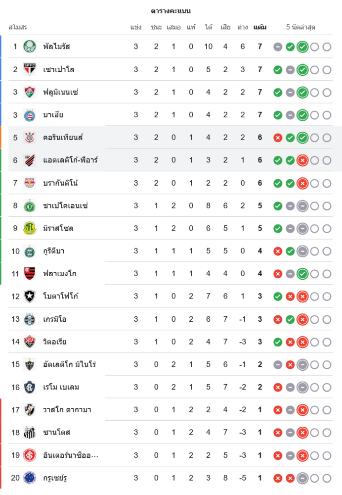 ผลนัดนี้ทำให้โครินเธียนส์เก็บเพิ่มเป็น 6 คะแนนจาก 3 นัด ขยับมายืนกลุ่มบนของตารางในอันดับ 5 ด้วยผลงานชนะ 2 แพ้ 1 ได้ 4 เสีย 2 ผลต่างประตูได้เสียบวก 2 ส่วนแอตเลติโก พาราเนนเซ่ แม้แต้มยังอยู่ที่ 6 เท่ากันจาก 3 นัด แต่ร่วงมาอยู่อันดับ 6 ด้วยผลต่างประตูได้เสียบวก 1 และสัญญาณเตือนชัดเจนคือเกมรุกสร้างได้แต่ต้องคมกว่านี้ ไม่อย่างนั้นแต้มจะหล่นอีกเรื่อยๆ