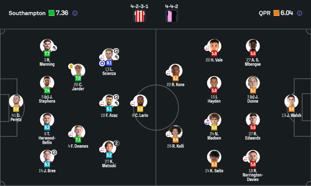 ช่วงท้ายเกมเซาธ์แฮมป์ตันทยอยเปลี่ยนตัวเติมความสด ยังมีจังหวะลองไกลอีกหน ส่วน QPR ได้เตะมุมบ้างแต่ยังเจาะไม่เข้า สรุปคือครึ่งหลังเป็นการ “ประกาศศักดา” ของเจ้าถิ่นเต็มรูปแบบ