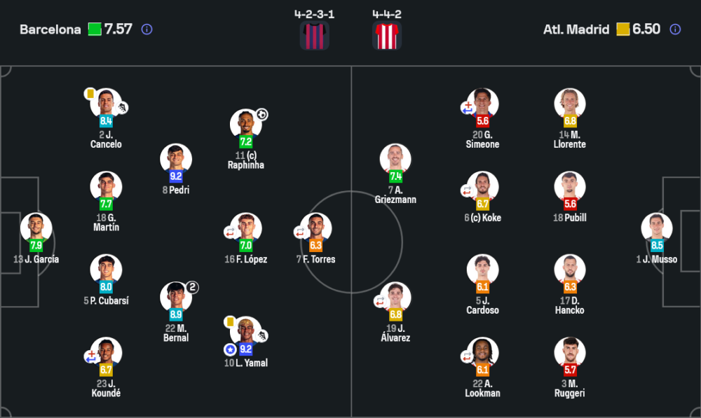 - 13′ Alejandro Balde (แทน J. Koundé) 7.2