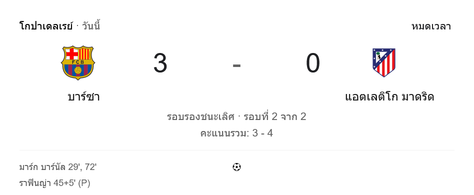 จาก : ผลบอลสด โกปา เดล เรย์ ระหว่าง บาร์เซโลน่า 3-0 แอตเลติโก้ มาดริด วันนี้ 4/3/69 – บ้านกีฬา