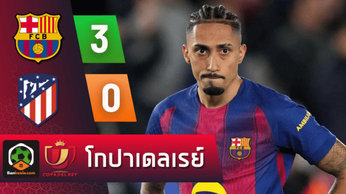 โกปา เดล เรย์ ค่ำคืนนี้ที่คัมป์ของบาร์ซ่าไม่ใช่เกมที่เล่นเอาหล่อ แต่มันคือเกมที่เล่นเอาตาย “บาร์เซโลน่า” เปิดเครื่องตั้งแต่นาทีแรก บีบสูง กดดันหนัก จนแอตฯ มาดริดแทบหายใจไม่ทั่วท้อง ก่อนระเบิดสกอร์ 3 เม็ดแบบชัดเจนทุกจังหวะ โดยเฉพาะลูกตั้งเตะที่กลายเป็นอาวุธทำลายล้างเต็มรูปแบบ ขณะที่ภาพรวมสองนัดยังเป็นงานหิน เพราะสกอร์รวมจบที่ 3-4 ทำให้ฝั่งตราหมีเป็นฝ่ายได้เฮในเส้นทางรายการนี้