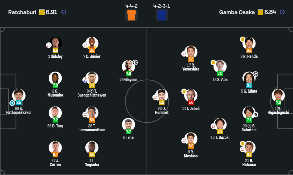 รายชื่อนักเตะตัวจริง คะแนน นักเตะเด่น และการเปลี่ยนตัว