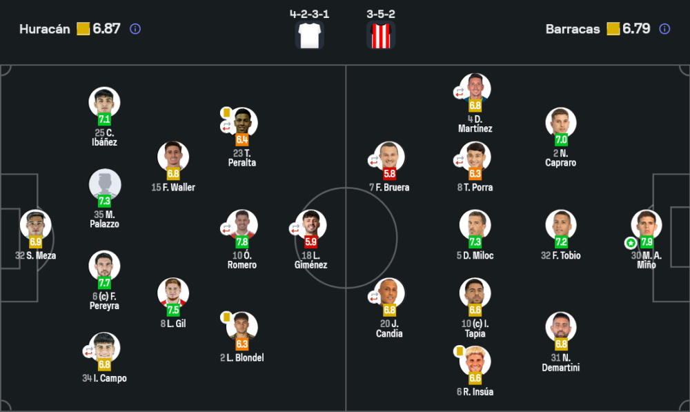 มาร์เซโล่ อากุสติน มิโญ่ คือผู้เล่นที่เด่นที่สุดของเกมแบบชัดเจน นายทวารบาร์รากัส เซ็นทรัลได้คะแนน 7.9 สูงสุดในสนาม และเซฟหลายจังหวะสำคัญ โดยเฉพาะลูกยิงของลูเซียโน่ กิเมเนซ, ออสการ์ คอร์เตส และเอริค รามีเรซ ถ้าไม่มีเขา ทีมเยือนอาจกลับบ้านแบบไร้แต้มไปแล้ว