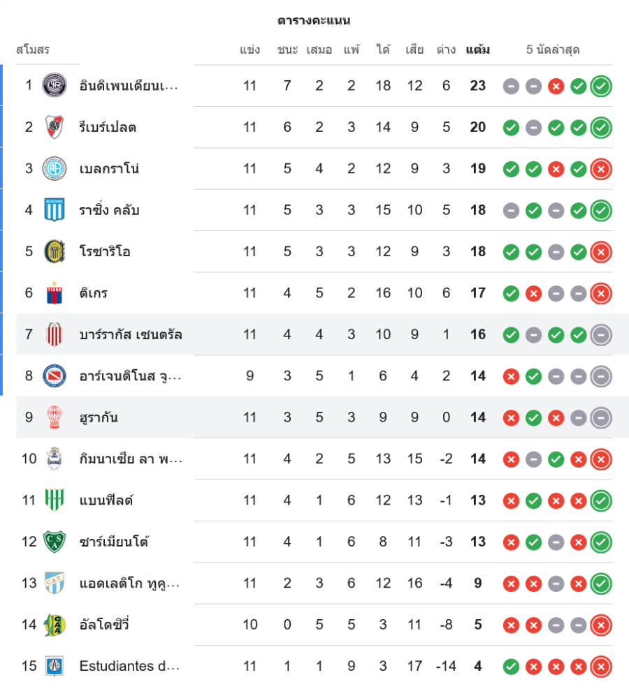 สถานการณ์ในตารางคะแนนอาร์เจนตินา ปริเมราดิบิซิออน