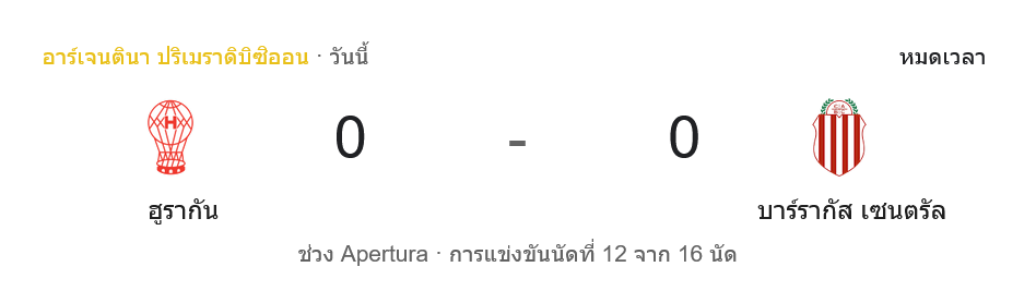 - 🚫 หมดเวลา อูรากัน เสมอ บาร์รากัส เซ็นทรัล 0-0