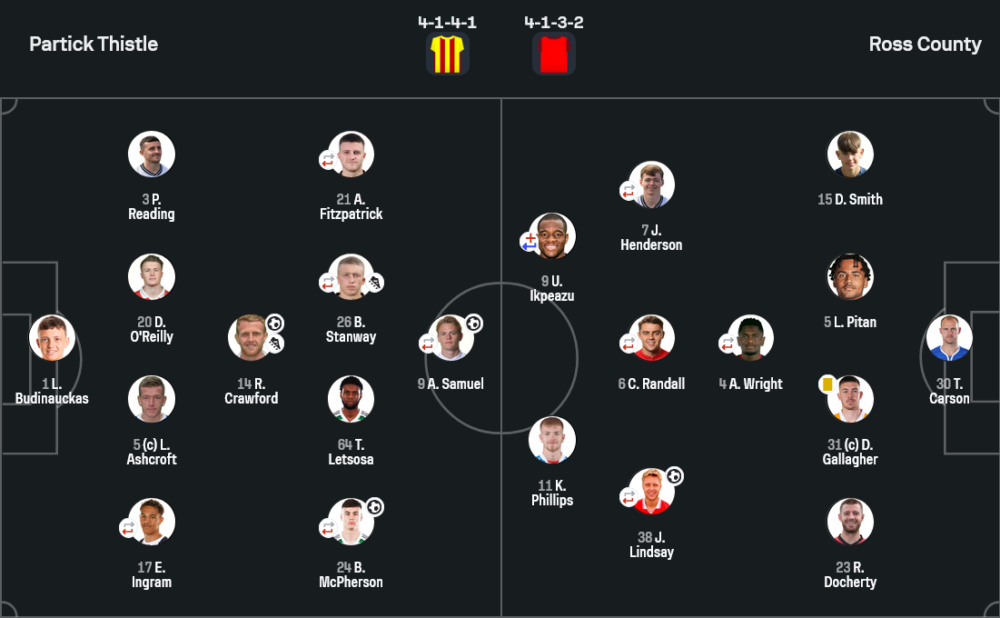 - ⚽ นาที 2 เจมี ลินด์ซีย์ ยิงให้ รอสส์ เคาน์ตี้ นำ 1-0