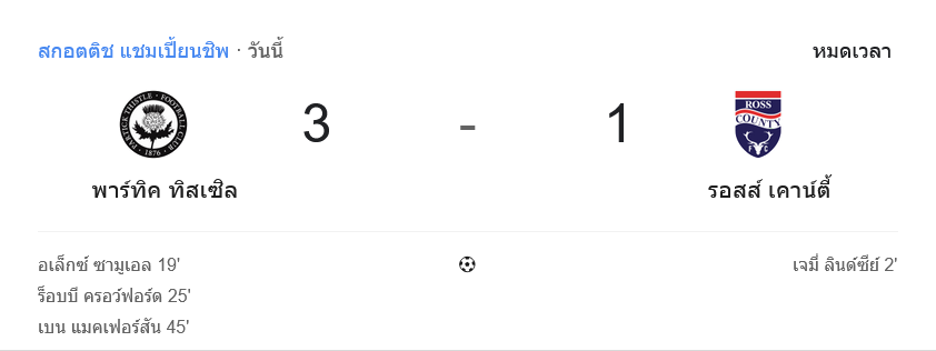จาก : ผลบอลสด สกอตติช แชมเปี้ยนชิพ ระหว่าง แพทริค ธิสเทิ่ล 3-1 รอสส์ เคาน์ตี้ วันนี้ 28/3/69 – บ้านกีฬา