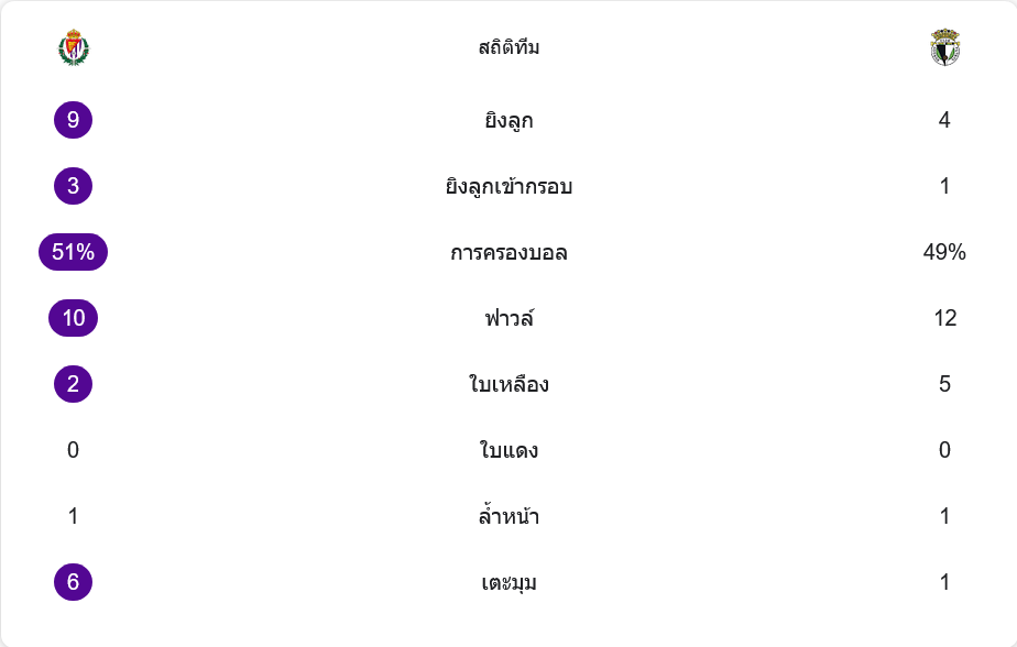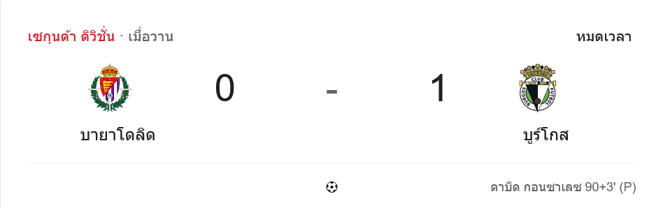 - ⚽ นาที 90+3 ดาวิด กอนซาเลซ ยิงจุดโทษให้บูร์โกสนำ 0-1