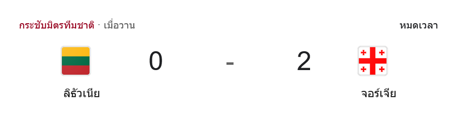 - ✅ หมดเวลา ลิทัวเนีย แพ้ จอร์เจีย 0-2