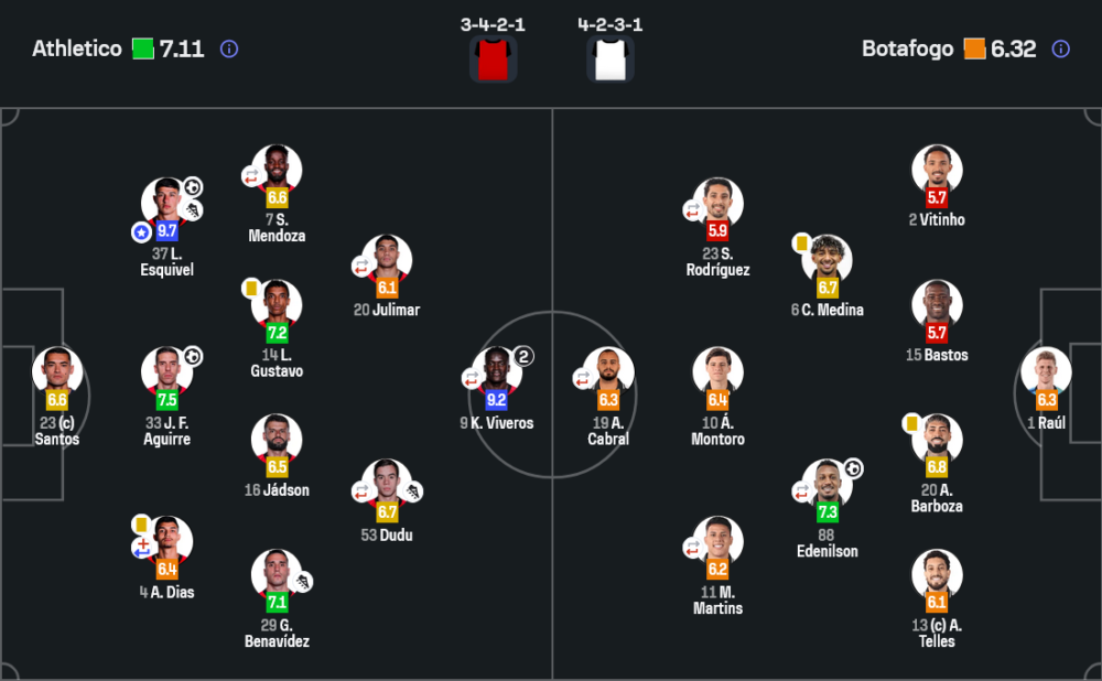 ลูคัส เอสกีเวล ได้คะแนนสูงสุด 9.7 และสมควรกับตำแหน่งนี้เต็มที่ เพราะเขาโดดเด่นทั้งเกมรุกและเกมรับ เติมขึ้นมาสร้างปัญหาทางฝั่งซ้ายตลอด และยังปิดท้ายด้วยฟรีคิกสุดสวยในนาที 81 ที่ฆ่าเกมแบบเด็ดขาด บ้านกีฬา มองว่าเขาคือหัวใจสำคัญที่ทำให้แอตเลติโก พาราเนนเซ่เหนือกว่าคู่แข่งตลอดทั้งคืน