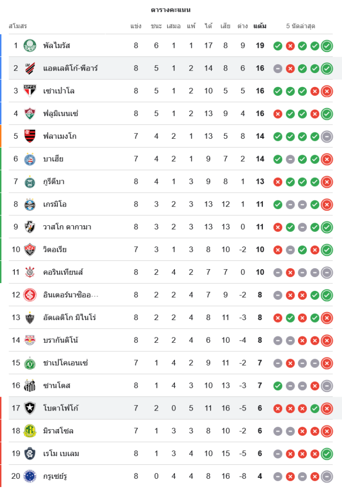 สถานการณ์ในตารางคะแนนซีรีส์ เอ บราซิล