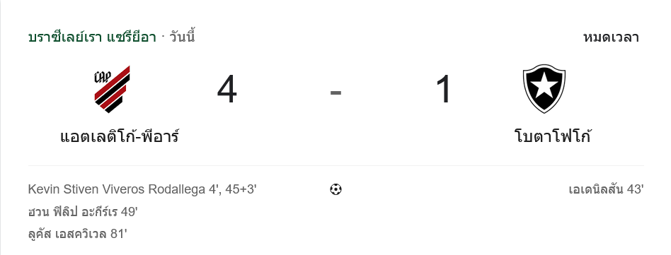 จาก : ผลบอลสด ซีรีส์ เอ บราซิล ระหว่าง แอตเลติโก พาราเนนเซ่ 4-1 โบตาโฟโก วันนี้ 30/3/69 – บ้านกีฬา