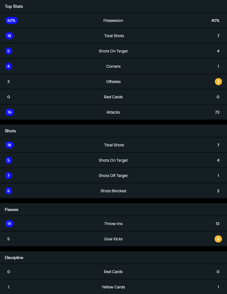เกมนี้ไซปรัสเหนือกว่าชัดในตัวเลขสำคัญ พวกเขาครองบอล 60 เปอร์เซ็นต์ ยิงรวม 18 ครั้ง เข้ากรอบ 5 ครั้ง ขณะที่มอลโดวามีโอกาสยิง 7 ครั้ง เข้ากรอบ 4 หน ไซปรัสได้เตะมุม 4 ครั้ง ส่วนมอลโดวามี 1 ครั้ง ทั้งสองทีมได้ใบเหลืองฝั่งละ 1 ใบ และไม่มีใบแดง เกมนี้จึงสะท้อนชัดว่าเจ้าถิ่นสร้างโอกาสได้มากกว่า แต่ทีมเยือนก็อันตรายในจังหวะจบสกอร์ไม่แพ้กัน