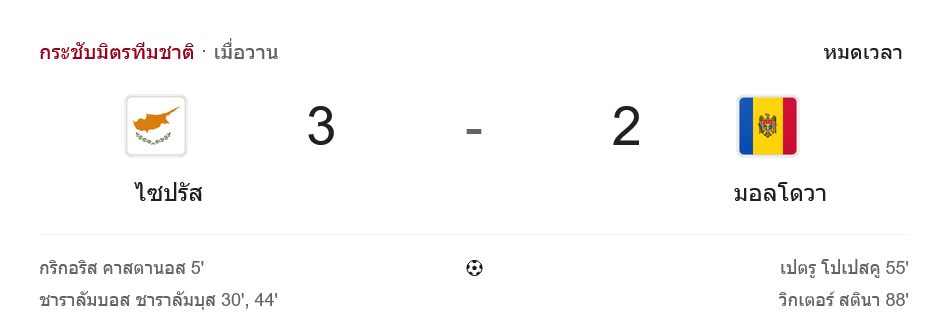 บ้านผลบอล คู่นี้เดือดเกินคำว่าเกมอุ่นเครื่อง เมื่อศึกกระชับมิตรทีมชาติระหว่าง ไซปรัส กับ มอลโดวา จบลงด้วยชัยชนะของไซปรัส 3-2 แบบลุ้นจนวินาทีสุดท้าย ใครที่ตาม ผลบอลสด ตลอดเกมจะเห็นชัดว่าเจ้าถิ่นออกตัวแรง คมกว่าในครึ่งแรก ก่อนโดนทีมเยือนเร่งเครื่องไล่กดในครึ่งหลังจนเกมเกือบพลิก