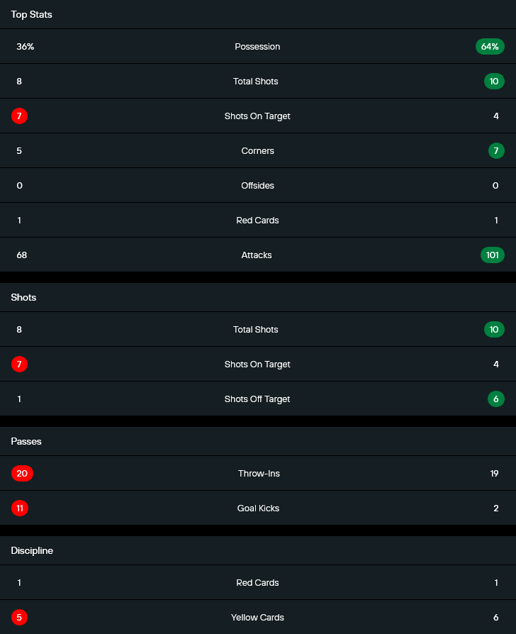 • 🟥 นาที 71 ลูเซียโน่ เฟร์นานเดซ โดนเหลืองที่สอง เป็นใบแดง