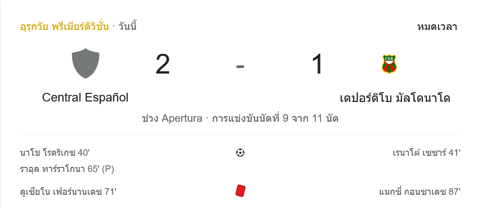 • ⏱️ หมดเวลา เซ็นทรัล เอสปันญ่อล ชนะ เดปอร์ติโบ้ มัลโดนาโด้ 2-1