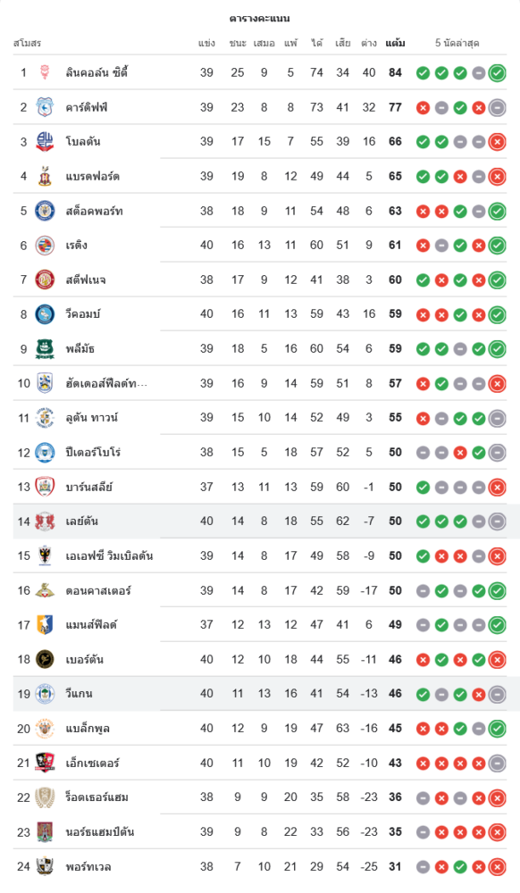 ลีก วัน อังกฤษลินคอล์น vs เลย์ตัน โอเรียนท์11 เม.ย. 2026 เวลา 18:30 น.
