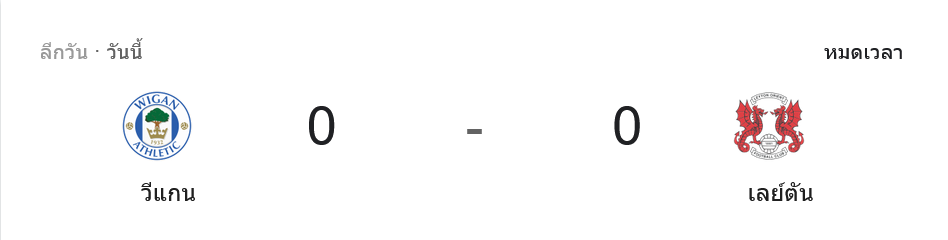 • ⏹️ นาที 98 จบเกม วีแกน เสมอ เลย์ตัน โอเรียนท์ 0-0
