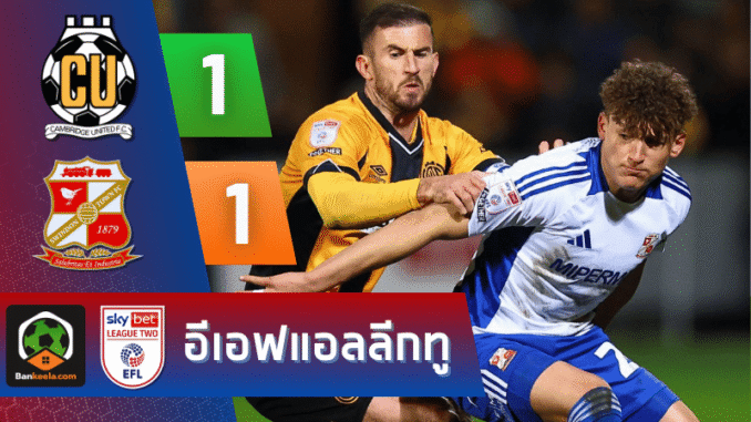 ศึก ลีก ทู อังกฤษ เกมนี้จบแบบเจ็บลึกสำหรับเคมบริดจ์ ยูไนเต็ด หลังทำได้เพียงเสมอ สวินดอน ทาวน์ 1-1 ทั้งที่เป็นฝ่ายคุมเกมเกือบทั้งหมด ตัวเลข ผลบอลสด ชี้ชัดว่าเจ้าถิ่นเหนือกว่าทั้งการครองบอล โอกาสยิง และความอันตรายในพื้นที่สุดท้าย แต่สุดท้ายกลับพลาดสามแต้มแบบน่าเสียดาย