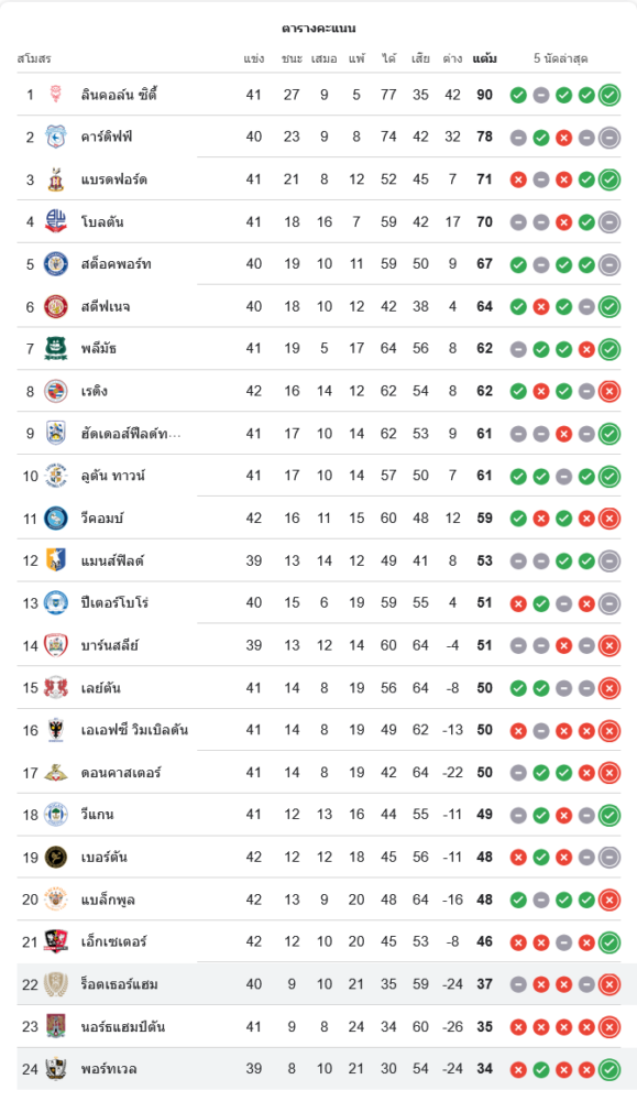 สถานการณ์ในตารางคะแนนลีก วัน อังกฤษ