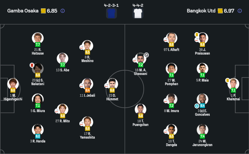 - เปลี่ยนตัว : อาร์ตูร์ 6.5, รุ่งรัฐ ภูมิจันทึก 6.7, ริวัลดินโญ่ 6.6, เนบอยซา โคโซวิช 6.7, มานูเอล บีร์ 6.8, ภูวดล พลสงคราม, กัณตภณ คีรีแลง, ริไชโร ฌีฟกอวิช, นิติพงษ์ เสลานนท์, ศุภณัฐ สุดาทิพย์, สุพรรณ ทองสงค์, ชญาวัต ศรีนาวงษ์