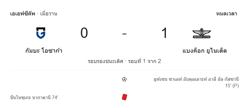 นี่คือ ผลบอลสด ที่ชัดมากในแง่รูปเกม กัมบะครองบอลมากกว่า บุกมากกว่า และได้เตะมุมเป็นกอบเป็นกำ แต่จังหวะสุดท้ายไม่คมพอ ขณะที่แบงค็อก ยูไนเต็ด เล่นเกมรับอย่างมีวินัย และใช้โอกาสสำคัญได้เฉียบขาดกว่า