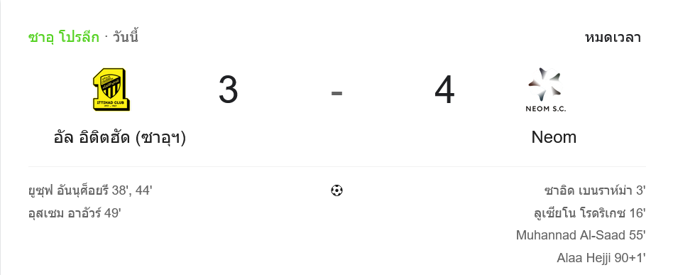 - ⏱️ หมดเวลา อัล อิตติฮัด 3-4 นีออม