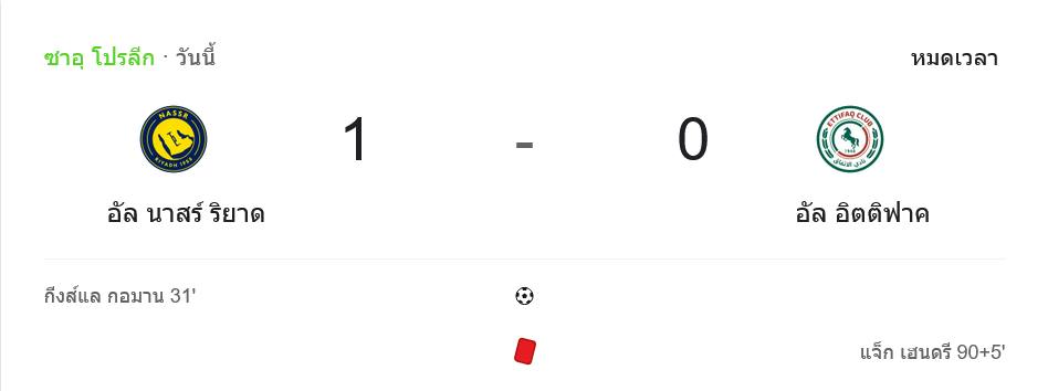 - ⚽ นาที 31 คิงส์เลย์ โกม็อง ยิงให้ อัล นาสเซอร์ นำ 1-0