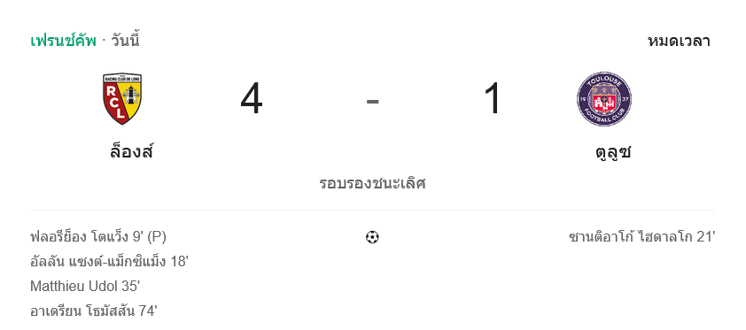 จาก : ผลบอลสด เฟร้นช์ คัพ ระหว่าง ล็องส์ 4-1 ตูลูส วันนี้ 22/4/69 – บ้านกีฬา