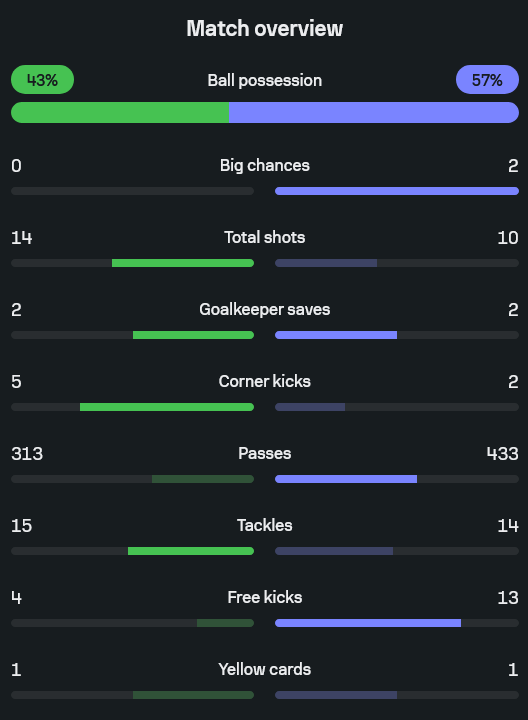 - นักเตะเด่น : ลูก้า คอนเนลล์ 7.7, เอโอฮาน โอคอนเนลล์ 7.6, มาแอล เดอ เกวินเยย์ 7.3