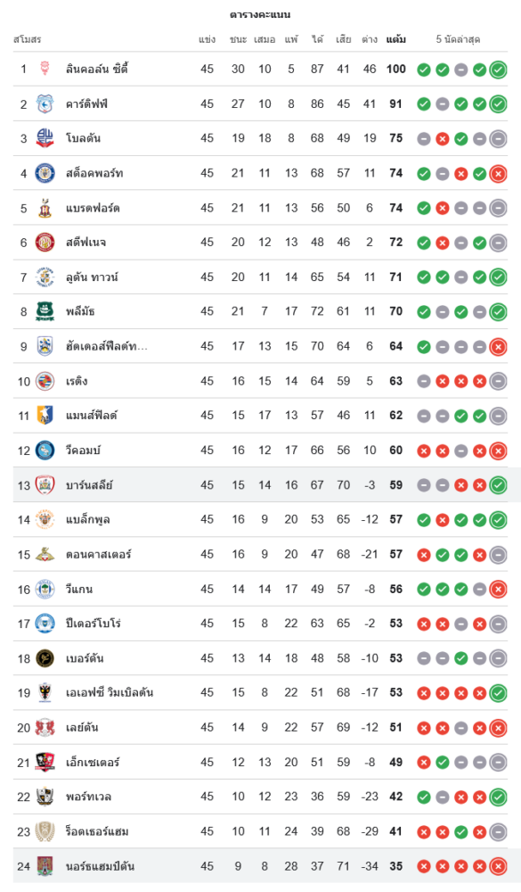 สถานการณ์ในตารางคะแนนลีก วัน อังกฤษ