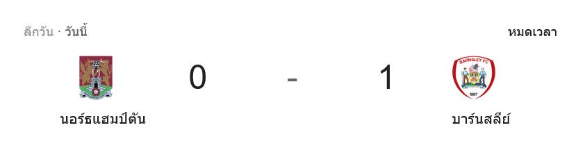บ้านกีฬา สรุปผล ผลบอลสด ลีก วัน อังกฤษ ประจำวันที่ 29 เมษายน 2569 นอร์ทแฮมป์ตัน เปิดบ้านแพ้ บาร์นสลี่ย์ 0-1 จากประตูชัยของ เรเยส เคลียรีย์ นาทีที่ 37 เกมนี้เจ้าถิ่นยิงมากกว่า แต่ขาดความคม ส่วนทีมเยือนเล่นนิ่งกว่า จังหวะสวนกลับมีน้ำหนัก และเก็บสามแต้มออกไปได้แบบเฉียบขาด