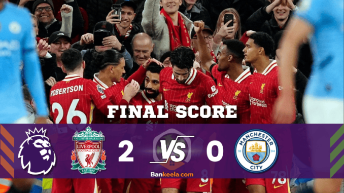 บ้านกีฬา รายงานผลบอลสดค่ำคืนนี้ “หงส์แดง” ลิเวอร์พูล เปิดรังแอนฟิลด์ดับความหวัง “เรือใบสีฟ้า” แมนเชสเตอร์ ซิตี้ ด้วยสกอร์ 2-0 โคดี้ กัคโป และ โมฮาเหม็ด ซาลาห์ คือผู้ทำประตูสำคัญที่พาทีมเจ้าบ้านเก็บสามแต้มไปครอง ท่ามกลางบรรยากาศที่เต็มไปด้วยความดุเดือดในสนาม