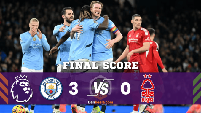 บ้านกีฬา รายงานผลบอลสดจากสนามเอติฮัด สเตเดี้ยม แมนเชสเตอร์ ซิตี้ โชว์ฟอร์มแกร่งเปิดบ้านถล่ม น็อตติ้งแฮม ฟอเรสต์ 3-0 จากผลงานยอดเยี่ยมของแบร์นาร์โด ซิลวา, เควิน เดอ บรอยน์ และเจเรมี โดกู ที่ช่วยกันยิงประตูพาทีมเก็บสามแต้มสำคัญ