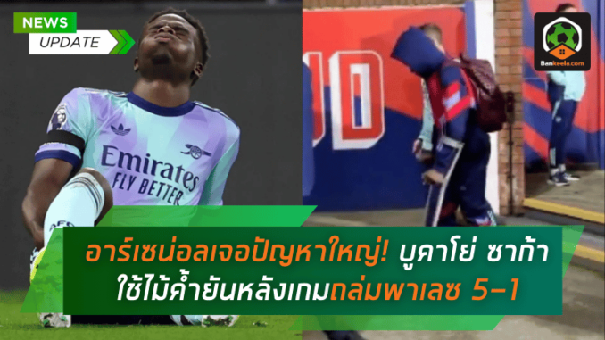 อาร์เซนอลเจอปัญหาใหญ่! บูคาโย่ ซาก้า ใช้ไม้ค้ำยันหลังเกมถล่มพาเลซ 5-1 แฟนปืนใหญ่ลุ้นหนักอาการเจ็บซ้ำ