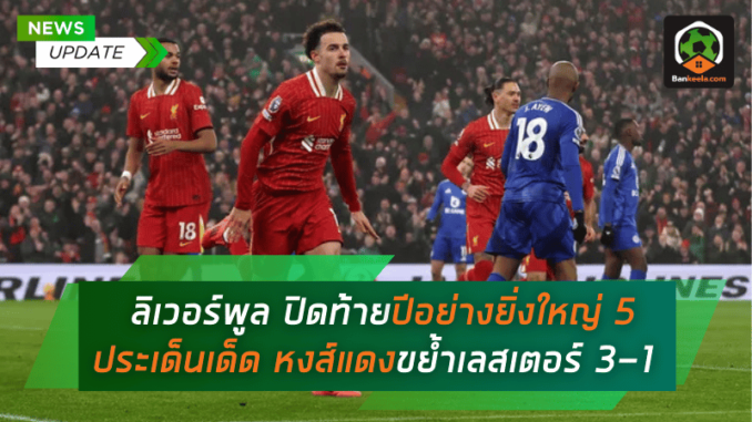 ลิเวอร์พูล ยังคงโชว์ฟอร์มร้อนแรงสมฐานะจ่าฝูง พรีเมียร์ลีก ด้วยการเปิดบ้านเอาชนะ เลสเตอร์ ซิตี้ ไปด้วยสกอร์ 3-1 ในเกมเหย้านัดสุดท้ายของปี 2024 แม้จะถูก “จิ้งจอกสยาม” ยิงขึ้นนำตั้งแต่ต้นเกม แต่ความมุ่งมั่นของทีมก็พลิกสถานการณ์กลับมาเก็บสามแต้มสำคัญได้ พร้อมขยายช่องว่างจาก เชลซี อันดับสองเป็น 7 แต้ม แถมยังลงเล่นน้อยกว่าอีกหนึ่งนัด มาดูกันว่า 5 ประเด็นสำคัญในเกมนี้มีอะไรบ้าง